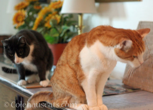 And in the off chance you think Quint is the perfect cat and never finds trouble, here’s proof that he’s just as tempted by the forbidden buffet table top as that one cat who’s more on it than not.